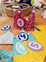 Coronas de cumpleaños artesanales, hechas a mano en tela de algodón.