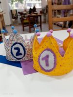 Cada corona está forrada, lleva números intercambiables (para reutilizar en varios años) y combina colores y estampados alegres que aportan diversión y encanto a cada celebración.